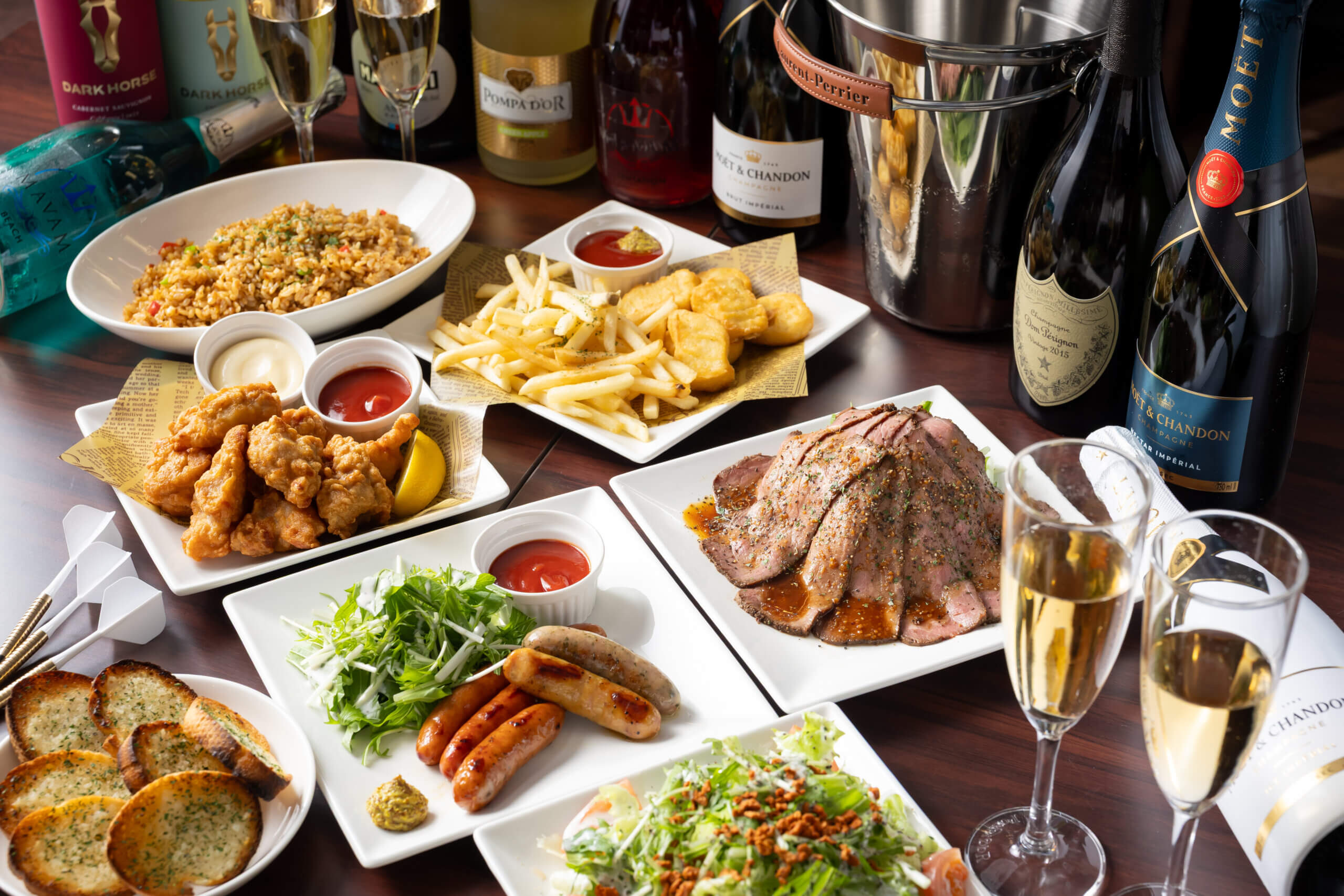 • 充実のフード&ドリンク: 特製パスタやローストビーフなどのしっかり系から、テキーラ、ナチョスなどのパーティーメニューまで充実のラインナップ。