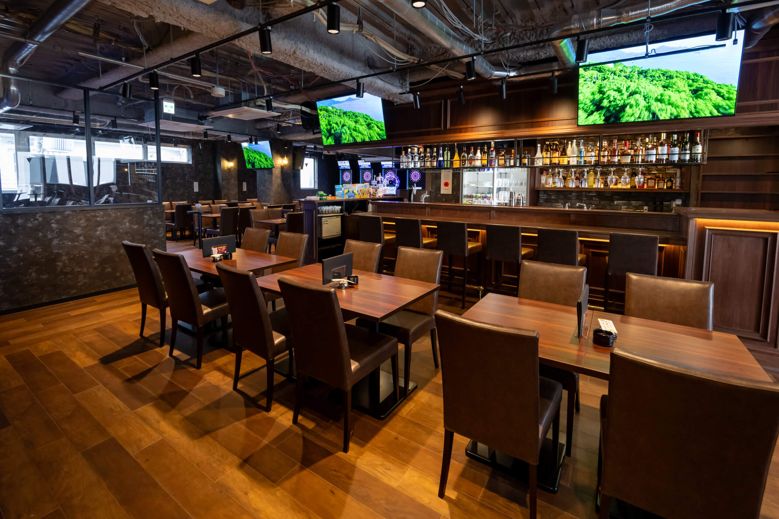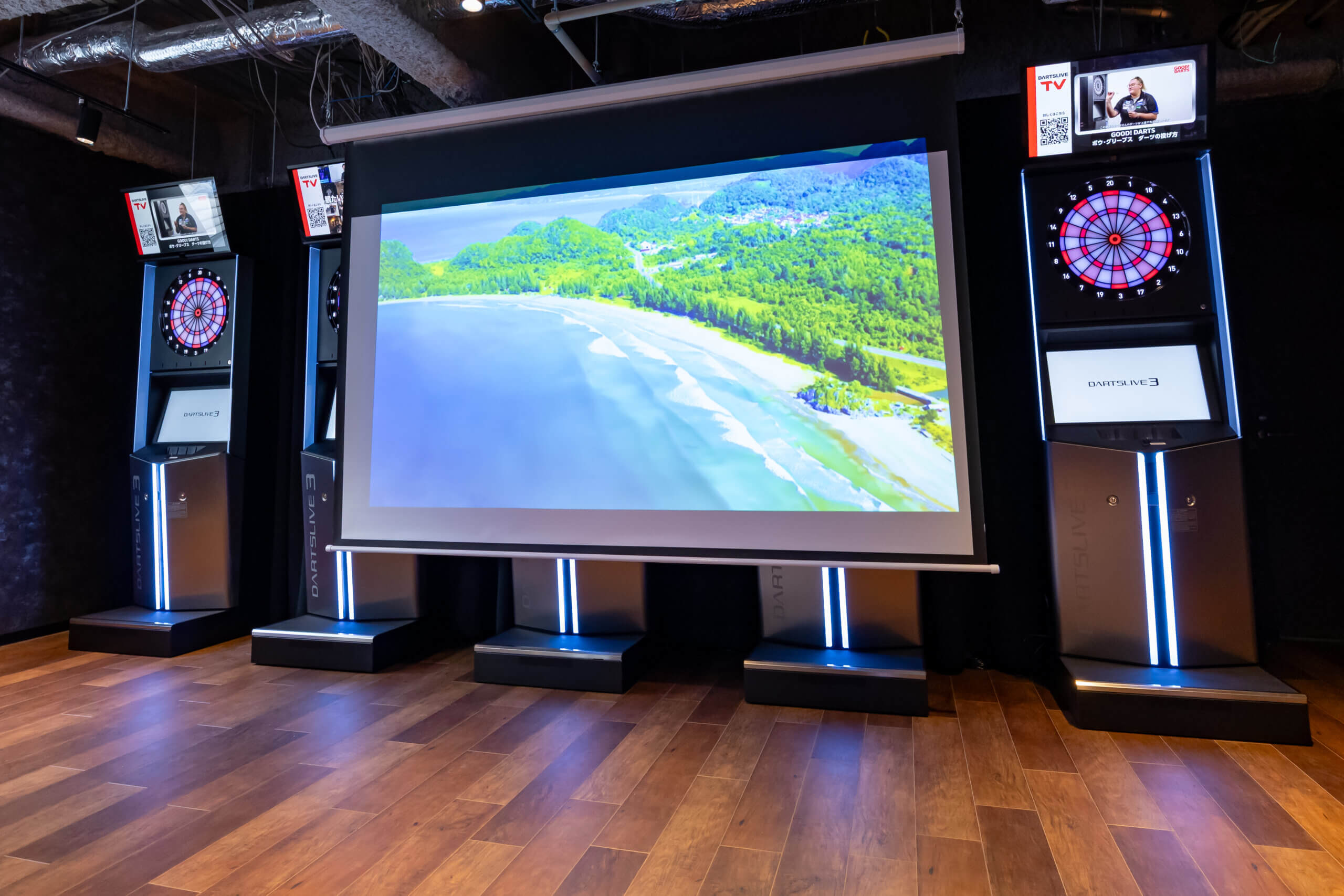 • 大型プロジェクターと複数のモニターを設置しており、店内のどの席からも迫力ある映像を楽しめます。
